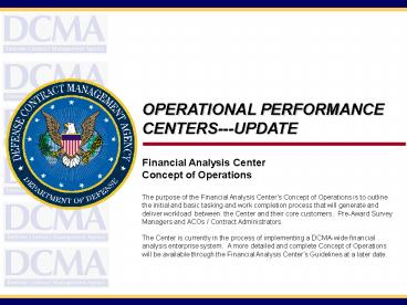 <Notice: Removed> OPERATIONAL PERFORMANCE CENTERS---UPDATE PowerPoint PPT Presentation