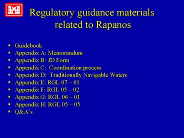 Regulatory guidance materials related to Rapanos PowerPoint PPT Presentation