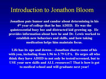 Title: Introduction%20to%20Jonathon%20Bloom