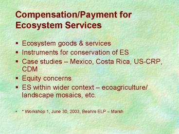 use transitions or improved management) - Public payments to producers for services (e.g.,