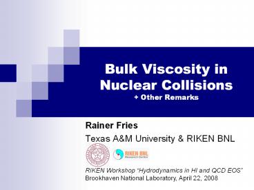Title: Bulk Viscosity in Nuclear Collisions Other Remarks
