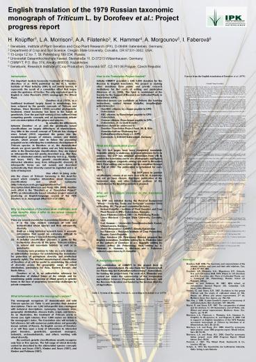 Hammer4, A. Morgounov5, I. Faberová6 1 Genebank,