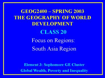Title: GEOG2400 SPRING 2003 THE GEOGRAPHY OF WORLD DEVELOPMENT