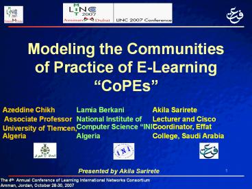 Modeling the Communities of Practice of E-Learning PowerPoint PPT Presentation