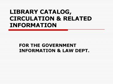 Title: LIBRARY CATALOG, CIRCULATION