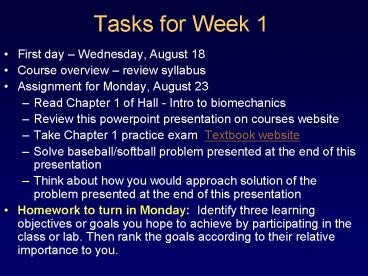 <Notice: Removed> Tasks for Week 1 PowerPoint PPT Presentation