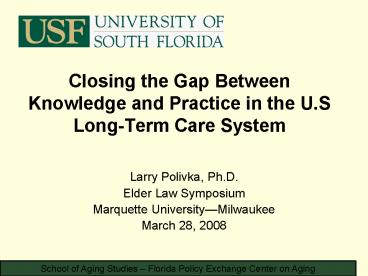 Closing the Gap Between Knowledge and Practice in the U'S LongTerm Care System PowerPoint PPT Presentation