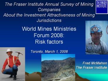 <Notice: Removed> The Fraser Institute Annual Survey of Mining Companies About the Investment Attractiveness of Mining Jurisdictions World Mines Ministries Forum 2008: Risk factors Toronto, March 1, 2008 PowerPoint PPT Presentation