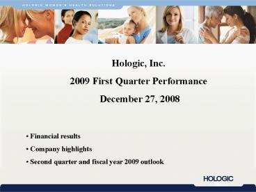 1Hologic, Inc. 2009 First Quarter Performance