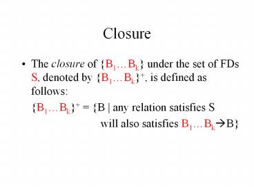 - The closure of B1Bk under the set of FDs S,