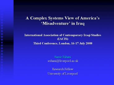 <Notice: Removed> A Complex Systems View of America PowerPoint PPT Presentation
