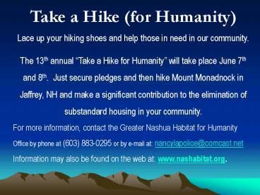 Take a Hike for Humanity PowerPoint PPT Presentation