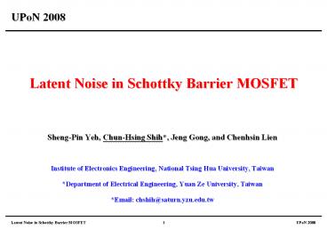 1Latent Noise in Schottky Barrier MOSFET