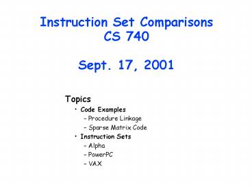 Title: Instruction Set Comparisons CS 740 Sept. 17, 2001