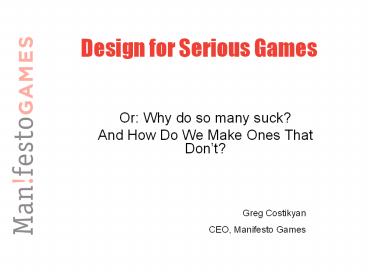 <Notice: Removed> Design for Serious Games PowerPoint PPT Presentation