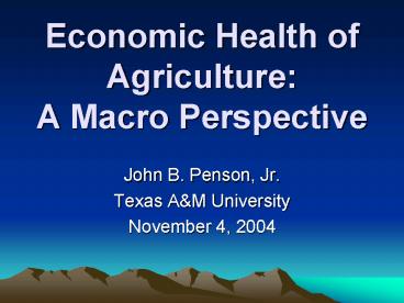 1Economic Health ofAgriculture A Macro