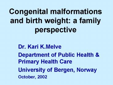 Congenital malformations and birth weight: a family perspective PowerPoint PPT Presentation