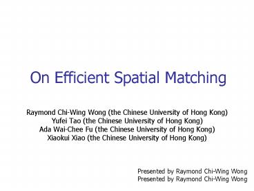 Hong Kong) - Yufei Tao (the Chinese University of Hong Kong)