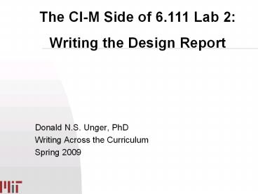 1The CI-M Side of 6.111 Lab 2 Writing the Design