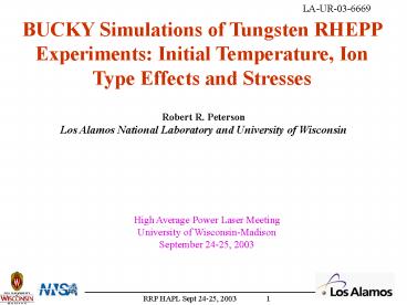 Robert R. Peterson Los Alamos National Laboratory