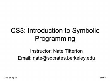 CS3: Introduction to Symbolic Programming - PowerPoint PPT Presentation