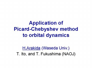 Application of PicardChebyshev method to orbital dynamics PowerPoint PPT Presentation