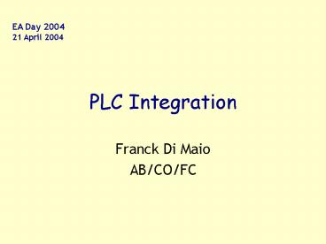 • GM _at_ PS/CO (and AB/CO/FC) ? PLC integration