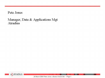 <Notice: Removed> Pete Jones Manager, Data PowerPoint PPT Presentation
