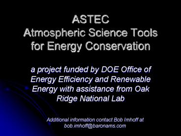 Title: ASTEC Atmospheric Science Tools for Energy Conservation