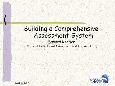 the state no later than Fall 2008 - Build an assessment system for use locally