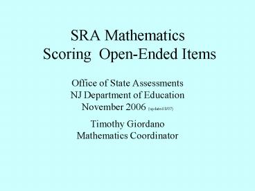 <Notice: Removed> SRA Mathematics Scoring Open-Ended Items PowerPoint PPT Presentation