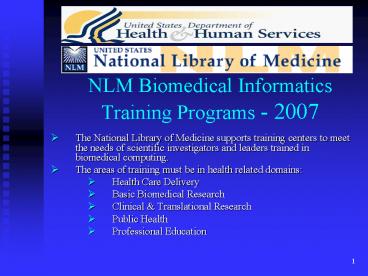 <Notice: Removed> NLM Biomedical Informatics Training Programs - 2007 PowerPoint PPT Presentation