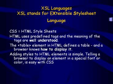<Notice: Removed> XSL Languages XSL stands for EXtensible Stylesheet Language PowerPoint PPT Presentation