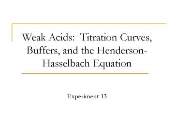 Title: Weak Acids: Titration Curves, Buffers, and the HendersonHasselbach Equation