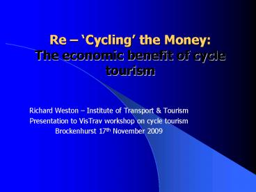 • Presentation to VisTrav workshop on cycle tourism