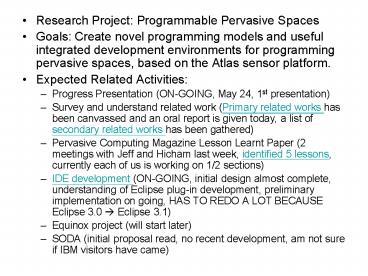 Research Project: Programmable Pervasive Spaces PowerPoint PPT Presentation