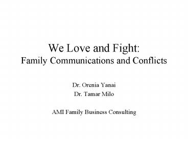 We Love and Fight: Family Communications and Conflicts PowerPoint PPT Presentation