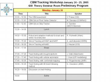 1CBM Tracking Workshop January 24 - 25, 2005 GSI Theory Seminar Room Preliminary Program