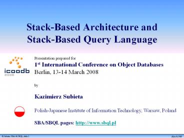 K.Subieta. Theory and Construction of