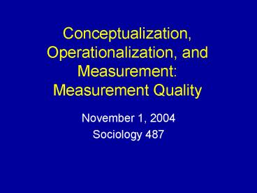 Conceptualization, Operationalization, and Measurement: Measurement Quality PowerPoint PPT Presentation