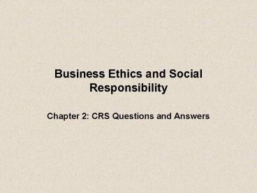 Title: Business Ethics and Social Responsibility