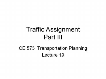 Traffic Assignment Part III PowerPoint PPT Presentation