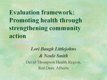 <Notice: Removed> Evaluation framework: Promoting health through strengthening community action PowerPoint PPT Presentation