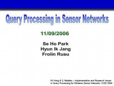 Title: Query Processing in Sensor Networks