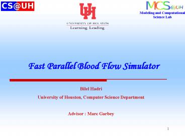 an incompressible Navier-Stokes flow simulations. - ? Bring blood flow simulation close to the