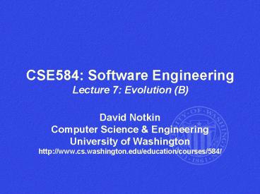 Title: CSE584: Software Engineering Lecture 7: Evolution (B)