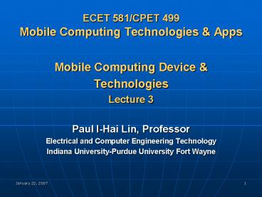 Title: ECET 581/CPET 499 Mobile Computing Technologies