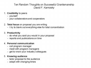 <Notice: Removed> Ten Random Thoughts on Successful Grantsmanship David F. Karnosky PowerPoint PPT Presentation