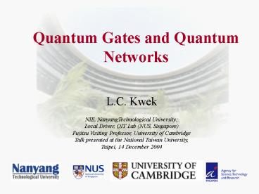 Driver, QIT Lab (NUS, Singapore) Fujitsu Visiting