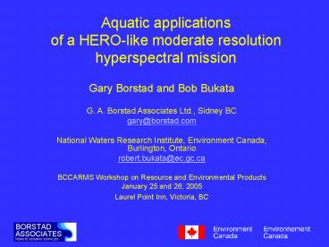 Title: Aquatic applications of a HEROlike moderate resolution hyperspectral mission